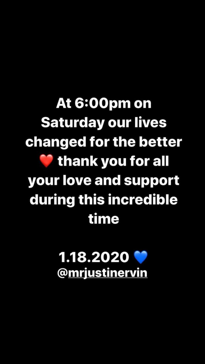 "A las 6:00 p.m del sábado nuestras vidas cambiaron para mejor. Gracias por todo su amor y apoyo durante este tiempo increíble 1.18.2020”, escribió junto a un emoji de corazón azul y una mención al padre del bebé.
